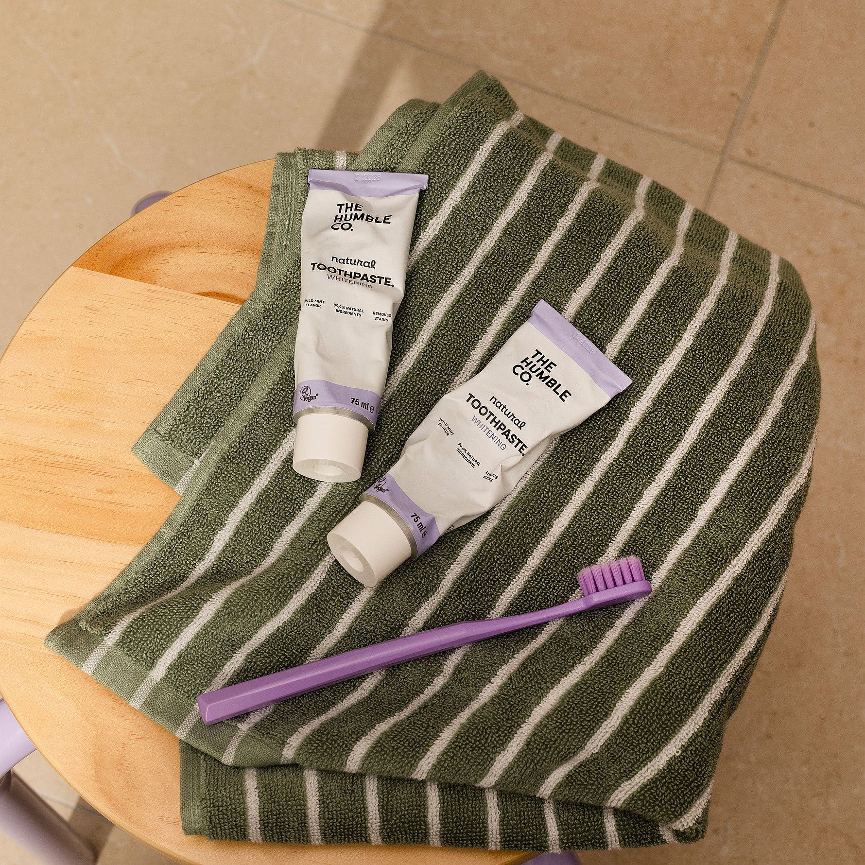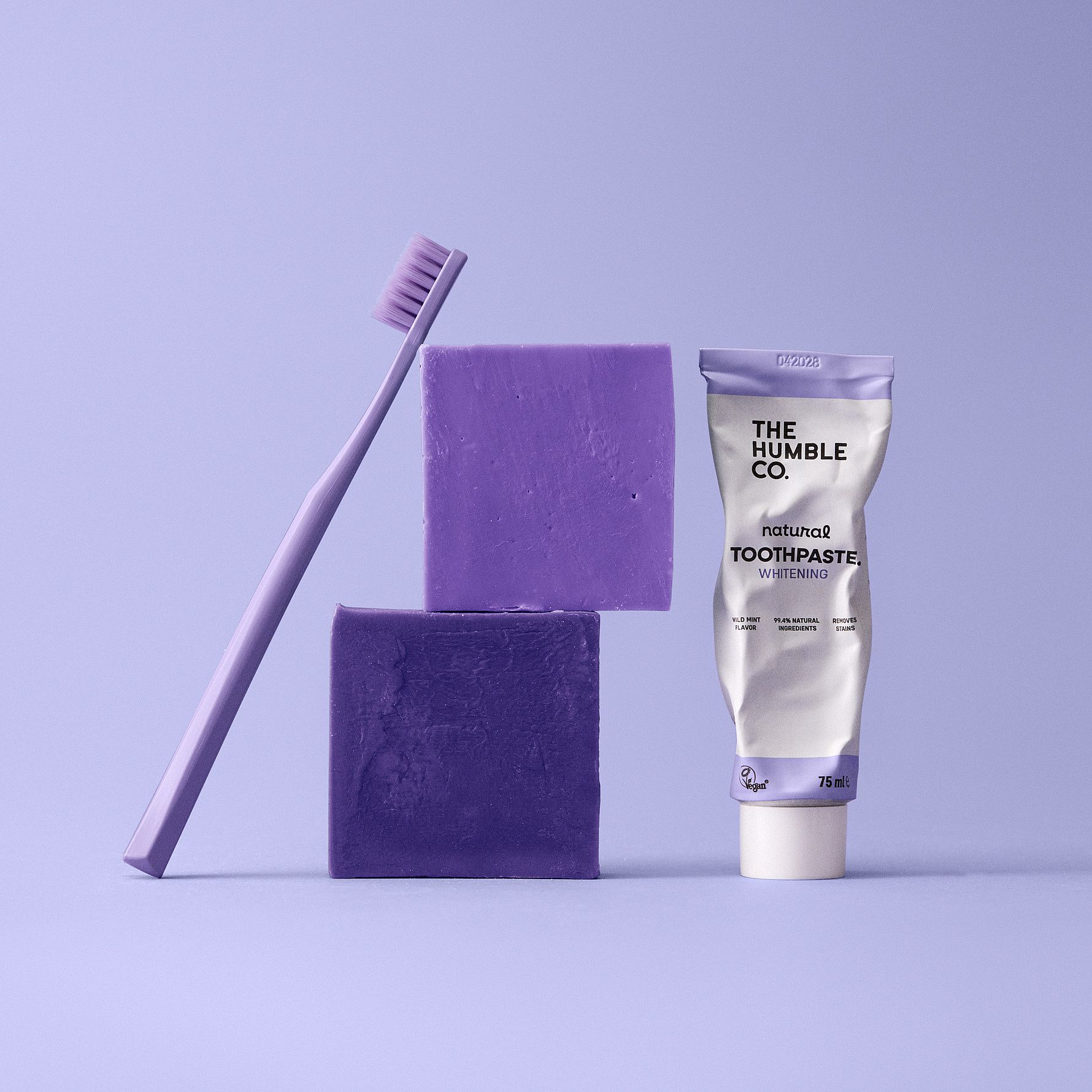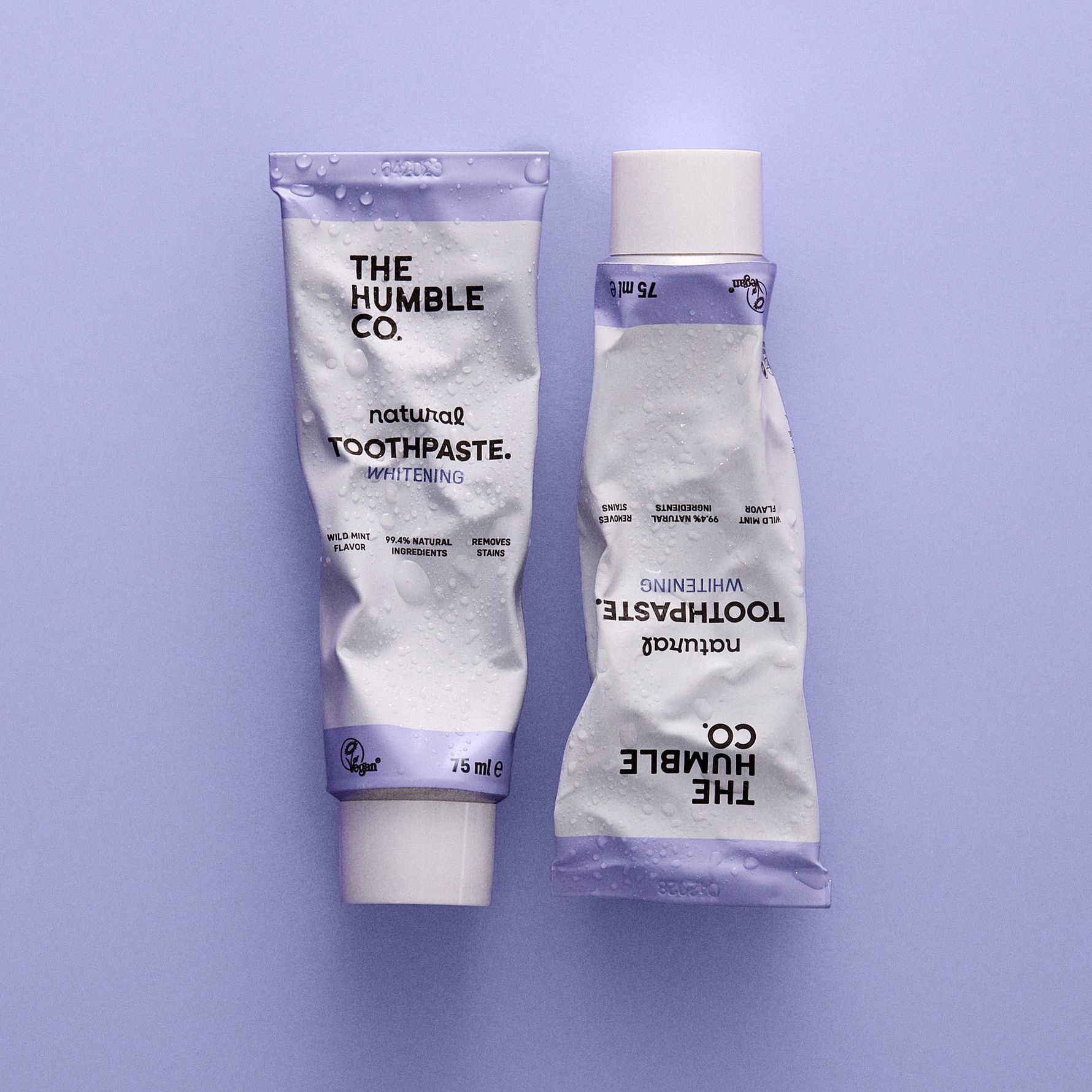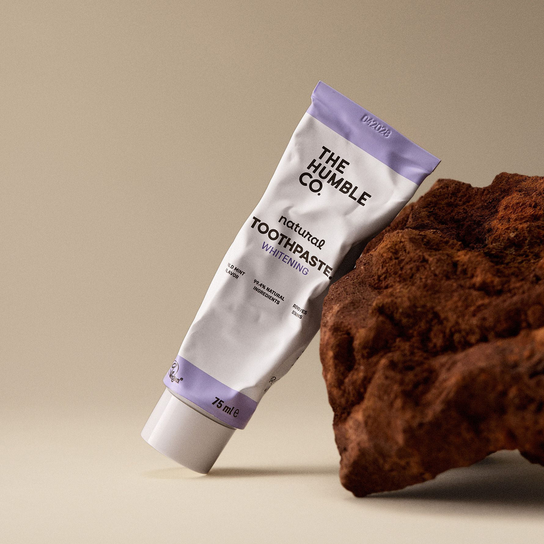 Om produktet Humble Co.’s Whitening Toothpaste lysner dit smil skånsomt uden brug af hårde slibemidler. Med 1450 ppm fluor hjælper den med at styrke emaljen, bekæmpe huller og fjerne overfladiske misfarvninger for et hvidere smil.