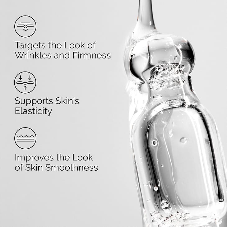 Reducerer alderstegn. Peptider og hyaluronsyre for elasticitet.
