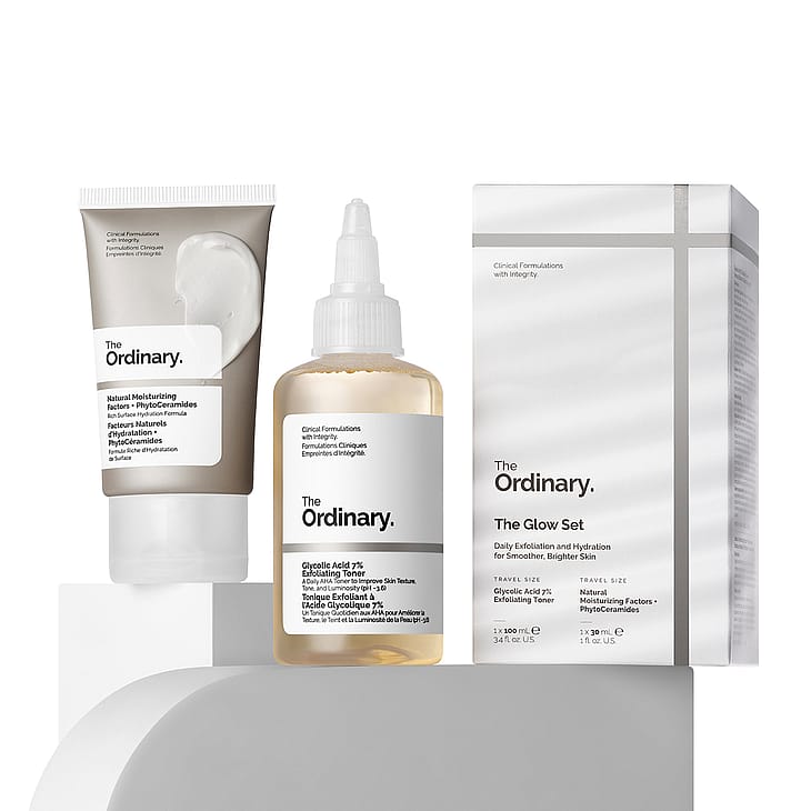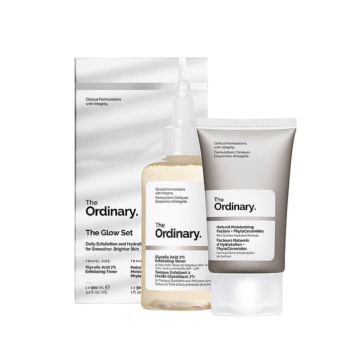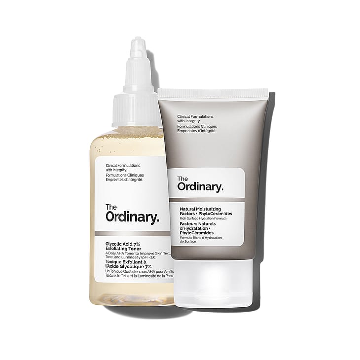 Sættet indeholder vores multifunktionelle Glycolic Acid 7% Exfoliating Toner og vores rigeste fugtighedscreme, der er ideel til tør hud - Natural Moisturizing Factors + PhytoCeramides.