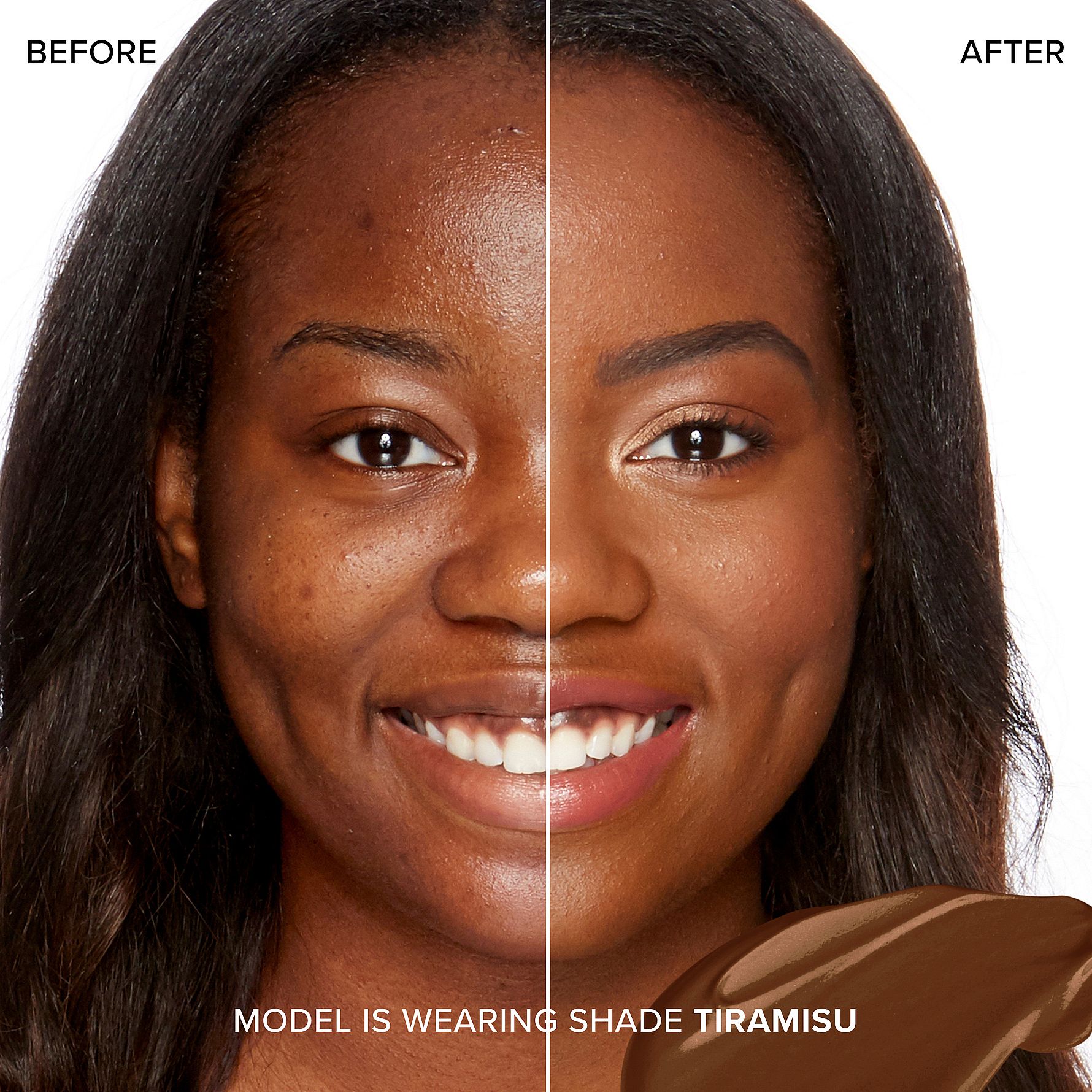 Påfør mere for at opnå den ønskede dækning. På områder med ekstrem rødme eller misfarvning skal du klappe på for ekstra dækning.