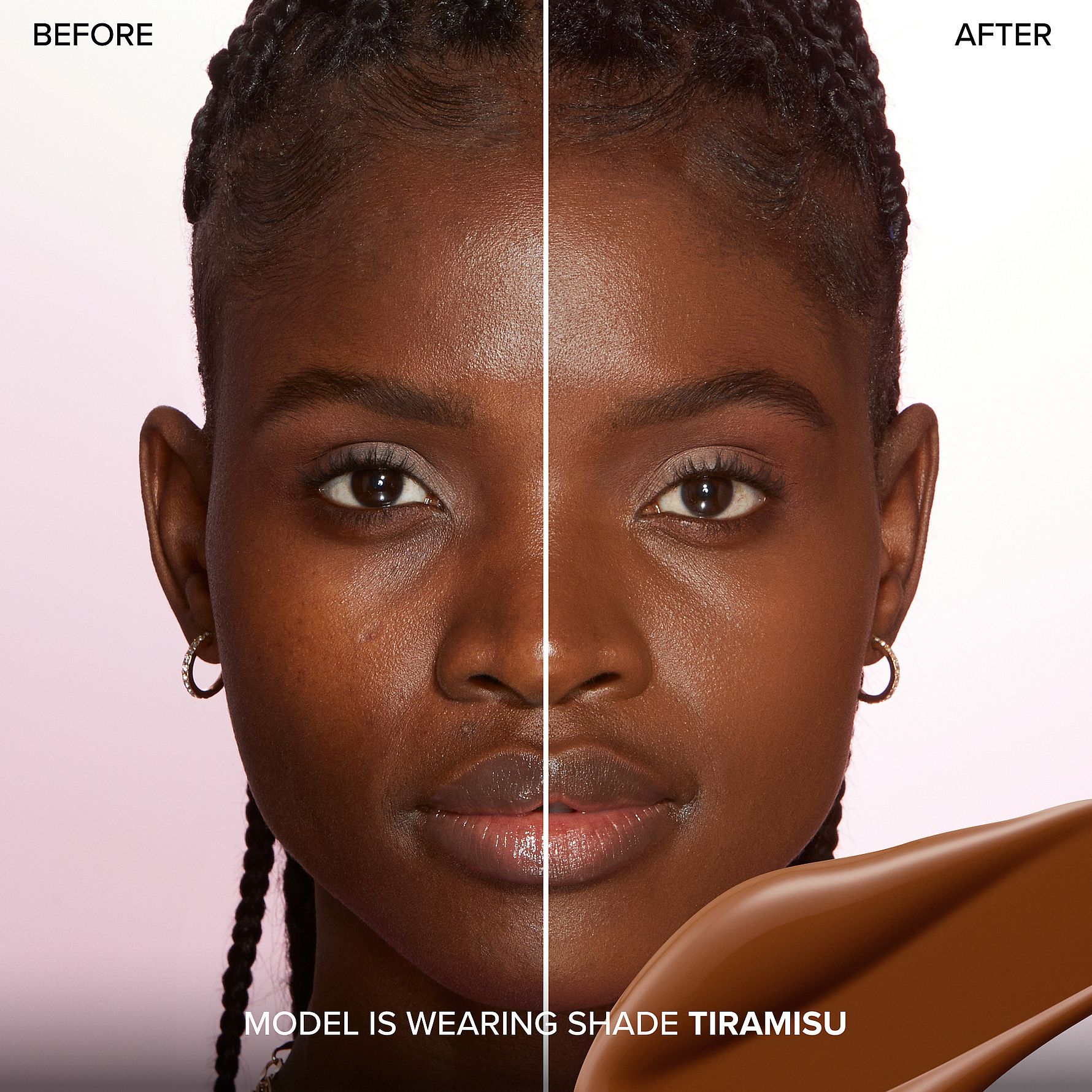 Den højtydende foundation udglatter hudens udseende og hjælper med at kontrollere talg uden at udtørre huden.