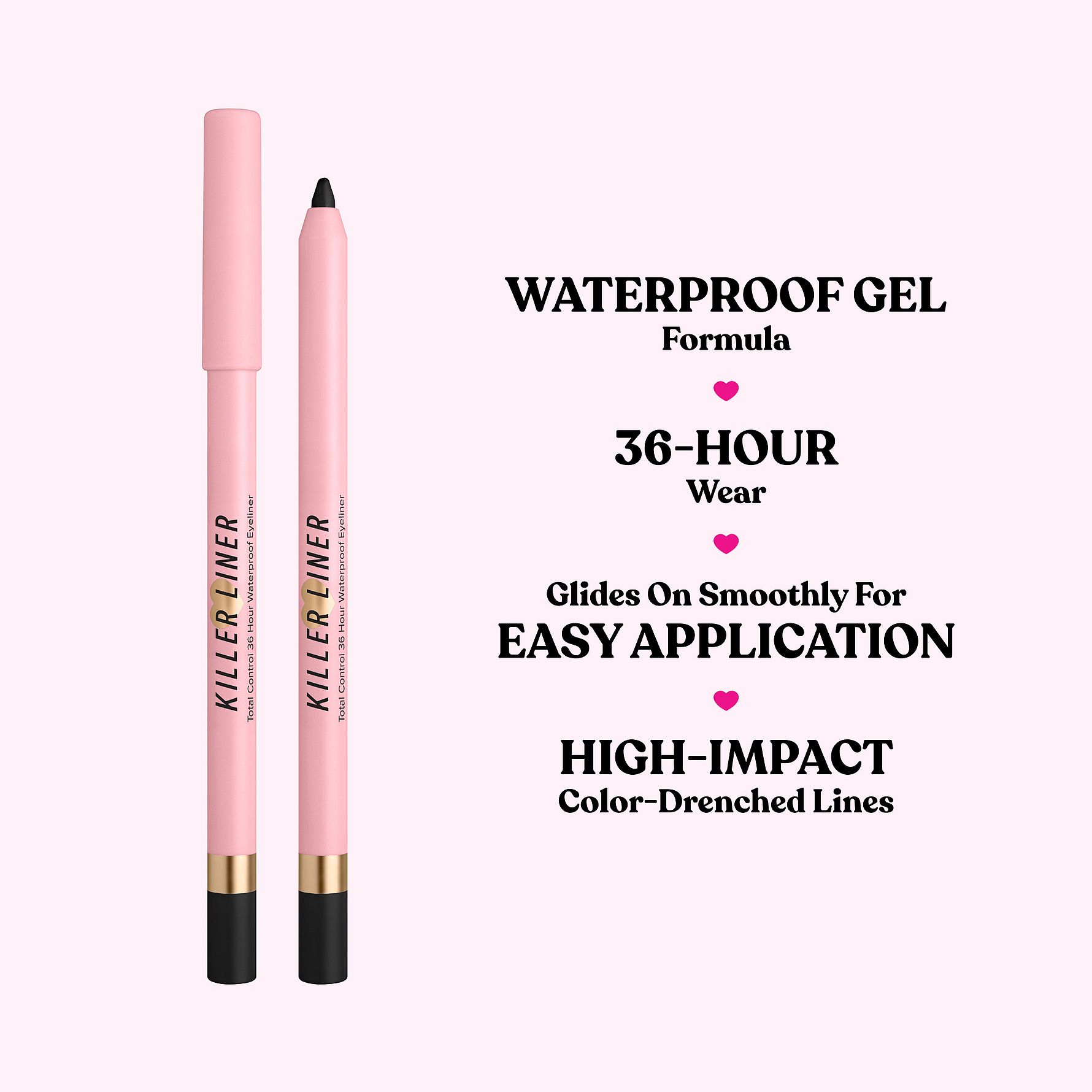 Killer Liner Gel Eyeliner er en eyeliner, der glider smukt og nemt på huden og giver en knivskarp linje, der holder i 36 timer.