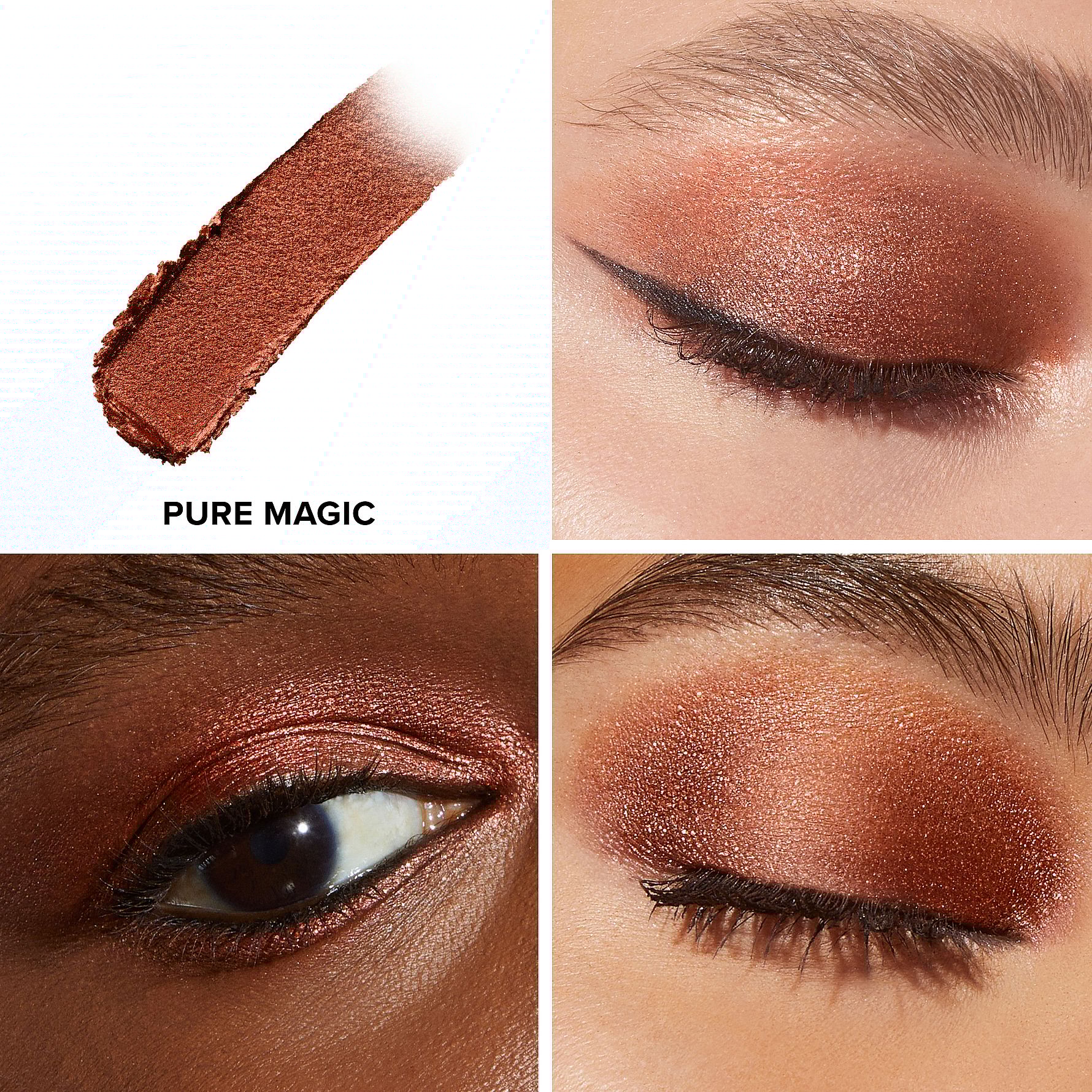Denne lette, cremede øjenskyggeblyant lysner og vækker øjnene med en blød glans af skinnende farve, der ikke drysser og forbliver farveægte på øjenlåget.