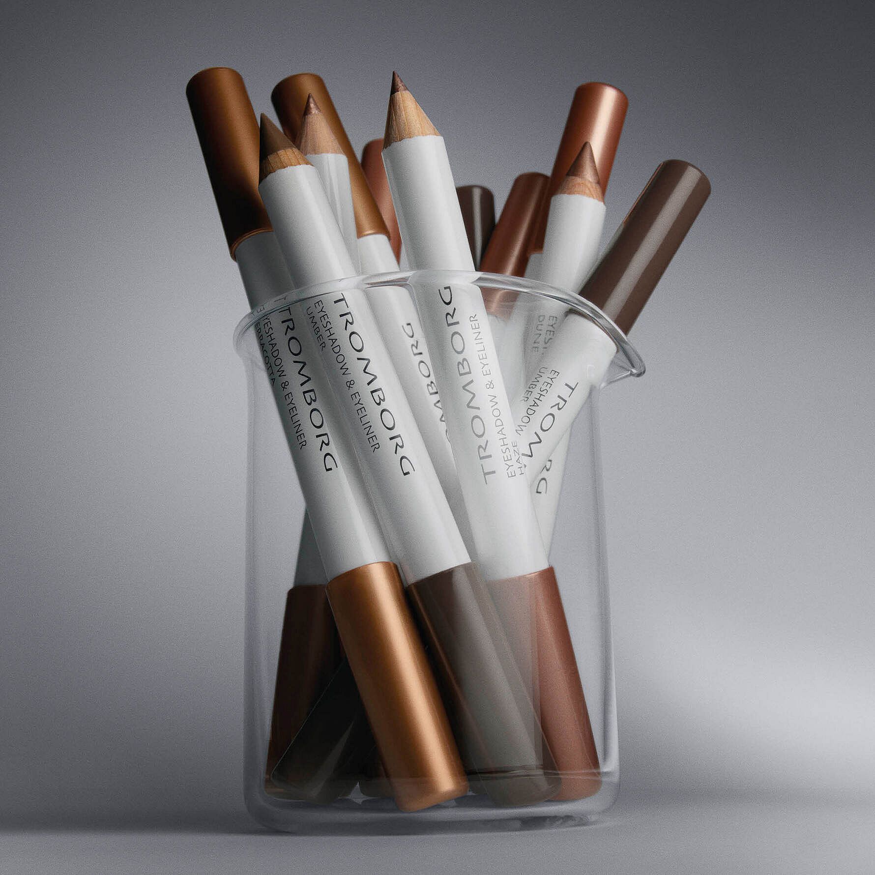 Brug eyeliner-enden til at lægge en linje langs vippekanten, både over og under øjet hvis du har lyst. Hvis du ønsker et fuldt look, kan du bruge øjenskyggen til nem påførelse på hele øjenlåget. Du kan skabe alt fra diskret definition til et fuldt farvemættet look. Blyanten kan spidses med Tromborgs pencil sharpener.