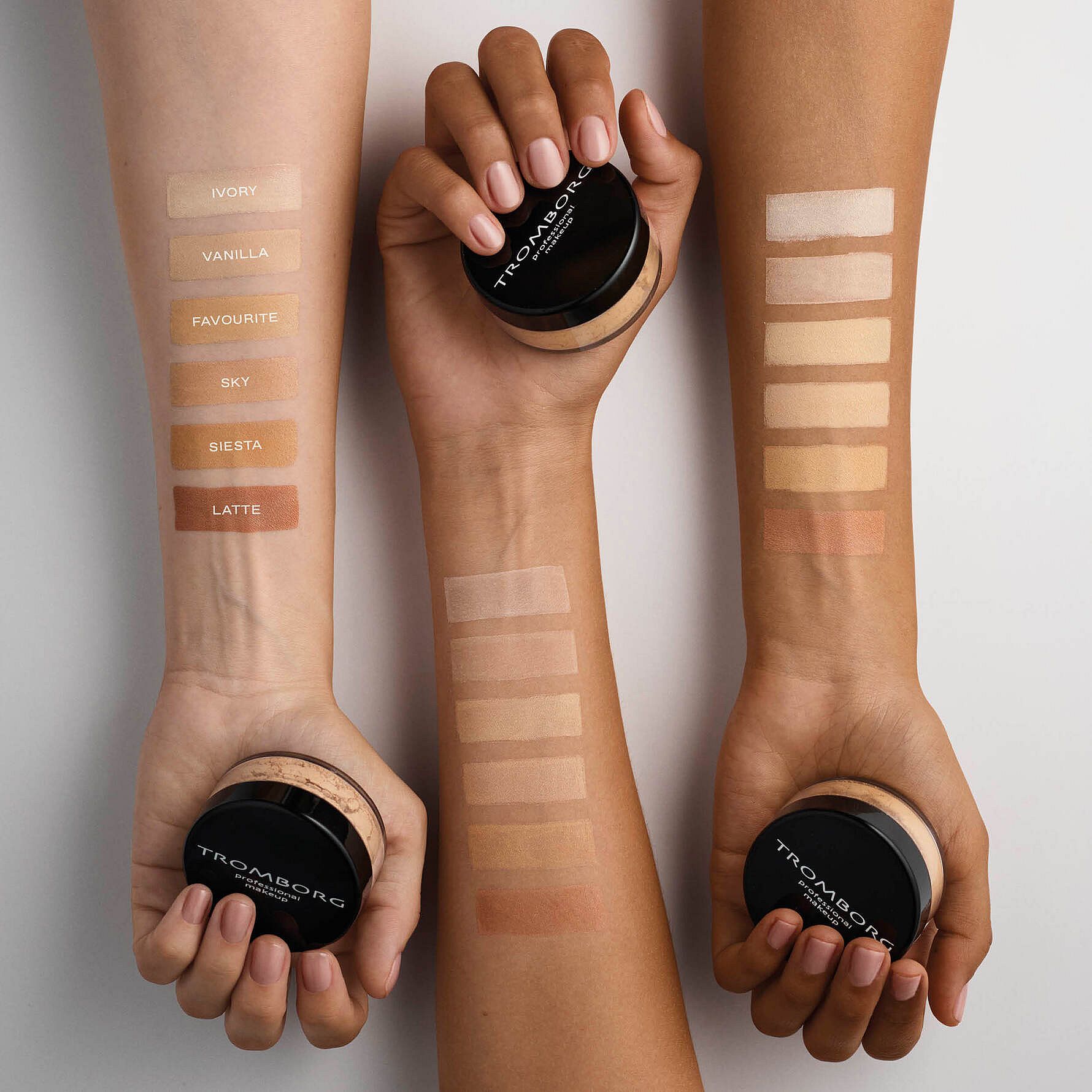 Tromborg Mineral Foundation Sky er en helt naturlig mineralfoundation med den bedste forarbejdning af mineralerne. Den fungerer som et fint lag af perfekt hud og efterlader huden usminket med en naturlig glød. Sky er meget tæt på farvern Favourite – men ikke helt så gylden i tonen. I vintermånederne er denne foundation ideel, da den ikke tørrer huden ud, men giver en naturlig glød der modvirker den grå vinterhud. Giv den som en skøn julegave, adventsgave eller værtindegave til én, der sætter pris på nem & naturlig makeup og økologisk velvære.
