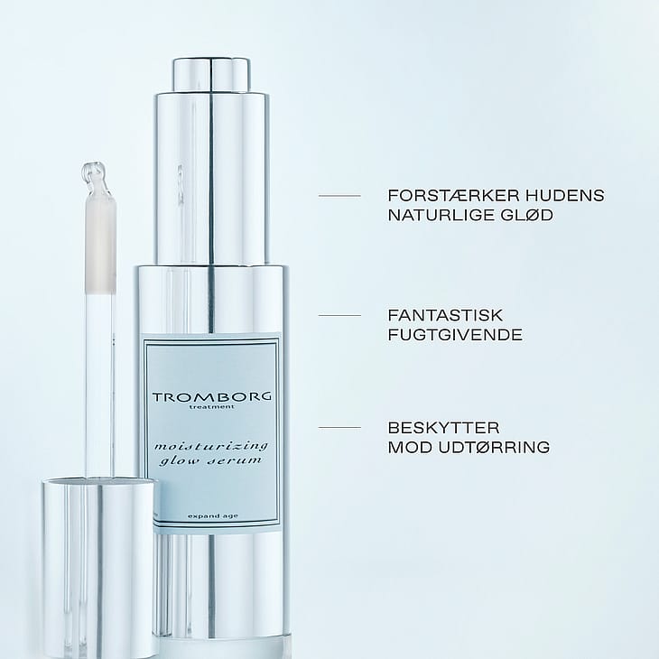 Tromborg Moisturizing Glow Serum 30ml er den ultimative booster-behandling, der giver din hud sin glød tilbage uden at gå på kompromis med fugt. Denne innovative formel med in-house science forbedrer hudens naturlige glød og får den til at stråle af velvære. Passionsfrugt og passionsblomst blødgør og afstresser huden, mens hyaluronsyre giver intensiv fugt. Mikroalger genoplader huden med ny energi og beskytter hudcellernes energicentre for et sundt udtryk. Serummet absorberes hurtigt af alle hudtyper og er perfekt som primer under makeup. Hvedekimolie og macadamianøddeolie, rige på vitaminer, mineraler og essentielle fedtsyrer, plejer og genopbygger huden. Resultatet er en glat, blød og smuk hud med en fornyet vitalitet og en strålende glød – året rundt.