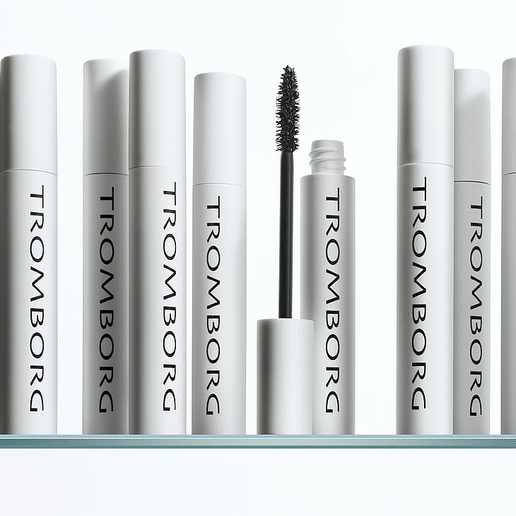 Start ved roden af vipperne, og "vrik" børsten ud til spidsen. Gentag for at opbygge volumen. Hold børsten lodret på de nederste vipper. For et mandelformet øje, fokuser på de yderste vipper. Denne teknik kan også hjælpe med at løfte tunge øjenlåg. Tromborgs in-house science har udviklet denne innovative mascara med fokus på skånsom pleje og et naturligt, smukt resultat.