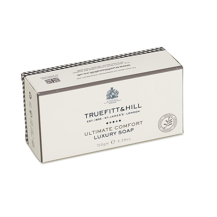 Dette luksuriøse, triple-milled sæbe fra Truefitt & Hill er fremstillet af de fineste, økologiske olier som fx oliven- og kokosolie samt glycerin.