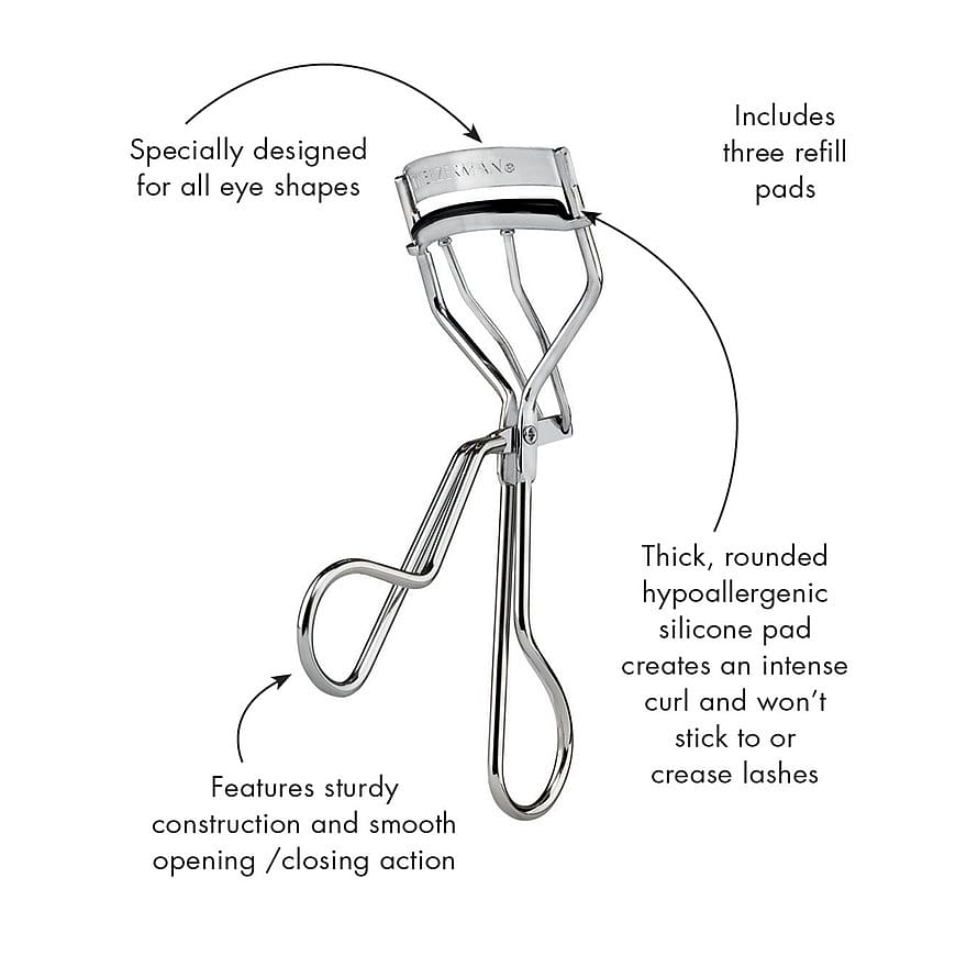 Classic Lash Curler bukker vipperne fra rod til spids og giver dig et mere åbent blik. Det ergonomiske design sikrer nem anvendelse og et præcist resultat, hver gang. De tykke, runde silikone pads er allergivenlige og skånsomme mod vipperne, da de ikke laver mærker eller hænger fast i dem, som gummi pads kan gøre.