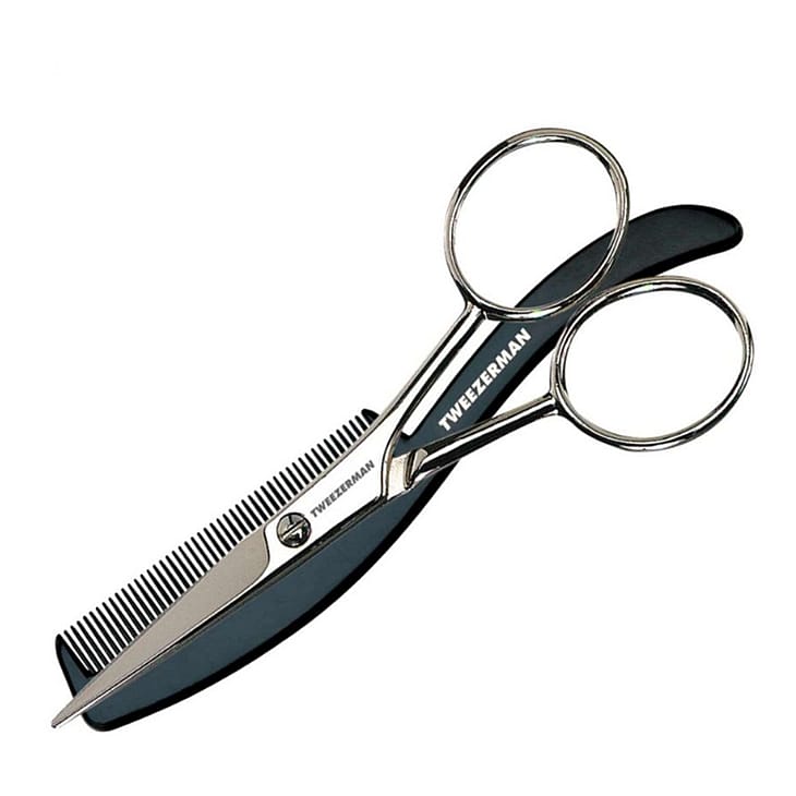 Saks og kam til skæg og øjenbryn. Et sæt med skarp og præcis saks og soigneringskam. Saksen er af rustfri stål og har store huller til fingrene, så du kan klippe med god præcistion.
