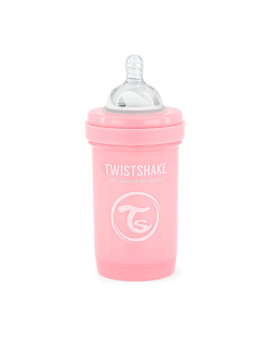 Med sin velovervejede form og det smarte design skaber Twistshakes sutteflaske en behagelig spisetid for dig og barnet. Flaskens form har det unikke TwistFlow anti-koliksystem, der har en luftventil og et mixer-net. Dette skaber et stabilt flow, der forhindrer unødvendig luft i at nå ned i barnets mave. Sutteflasken er fremstillet af PP-plast.