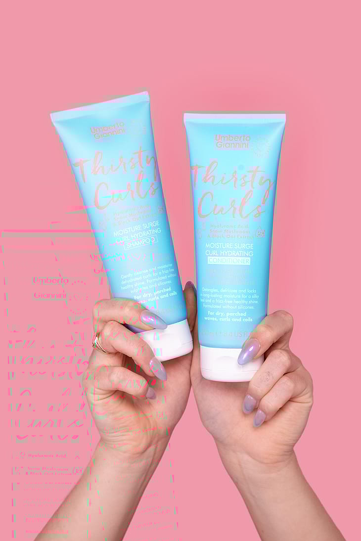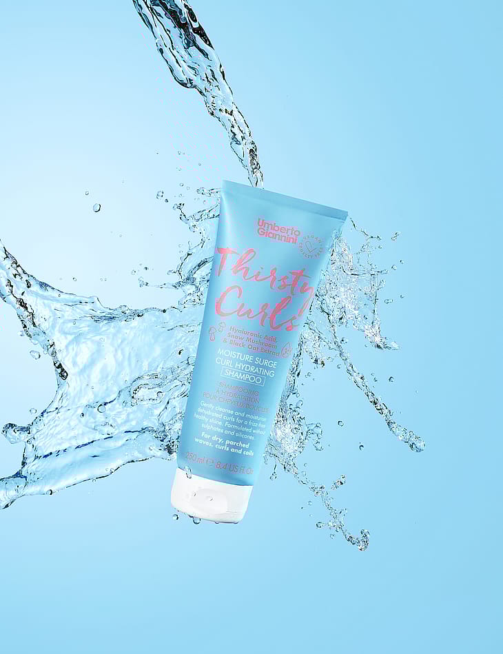 Thirsty Curls Shampoo er en fugtgivende shampoo, der renser og genopretter dehydrerede krøller og bølget hår med rigelig fugt og glans. Shampooen har en unik tredobbelt fugtgivende formel med hyaluronsyre, snesvampe og sort havreekstrakt, der forsegler fugt og tæmmer krus.