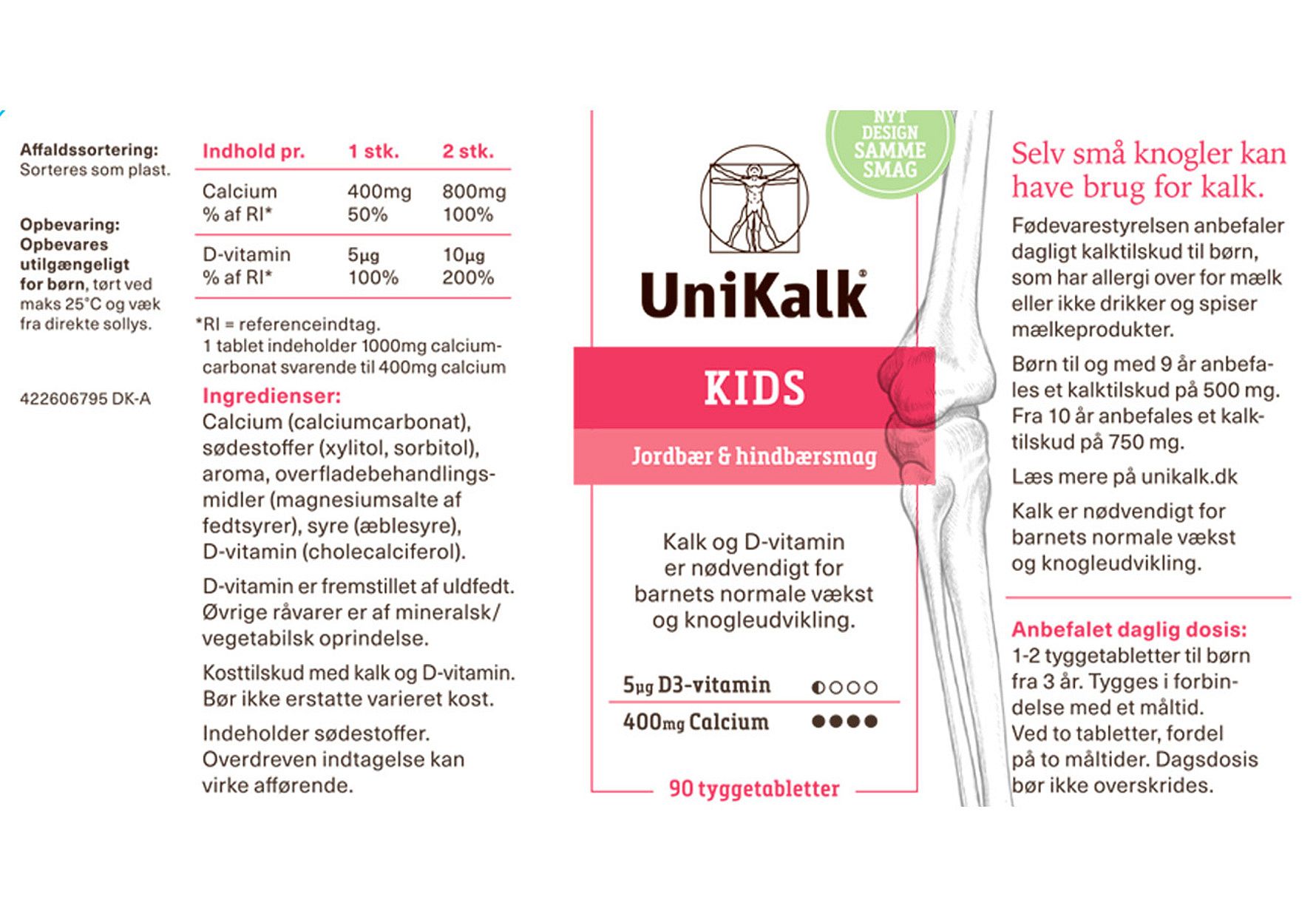 Kosttilskud. UniKalk Kids til børn fra 3 år.