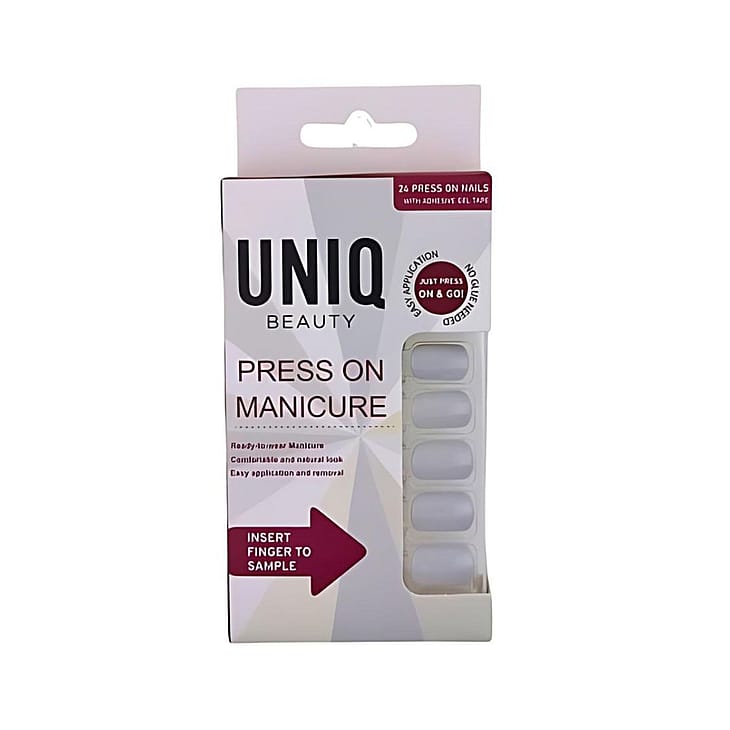 Få salon-kvalitets negle på ingen tid med UNIQ Click On / Press On Manicure Negle. I pakken finder du 24 Press on negle i farven pearl grey. Neglene er designet til at give en naturlig længde med den ovale form.