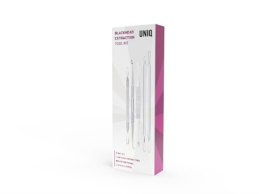 Komplet hudormefjerner sæt som kan hjælpe dig med bumser og hudorme derhjemme. Sættet indeholder fem forskellige comedonspyd, som har samme funktion, men som er formet forskelligt, så du kan vælge den der passer bedst til det du har brug for.