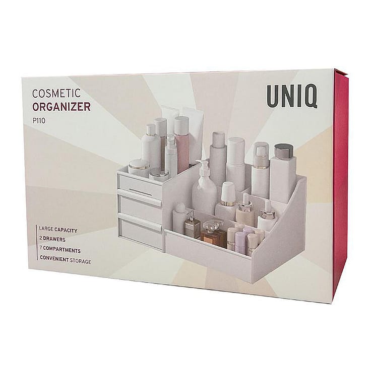 UNIQ Kosmetik Organizer Hvid er den perfekte løsning til at organisere dine skønhedsprodukter med stil. Denne minimalistiske organizer kombinerer praktisk anvendelighed med et elegant design, der passer perfekt ind i ethvert hjem. Hold styr på dine makeup børster, cremer, parfumer og andre skønhedsartikler, og skab et ryddeligt og overskueligt miljø.