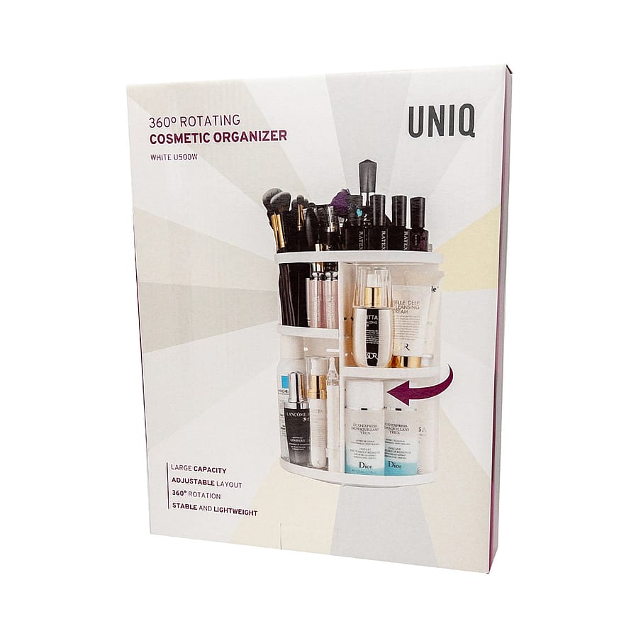 UNIQ Rotating Organizer i hvid er den ideelle løsning til at organisere og skabe overblik over dine skønhedsprodukter. Denne elegante og praktiske organizer roterer 360 grader, hvilket giver dig nem adgang til alle dine makeup- og hudplejefavoritter.