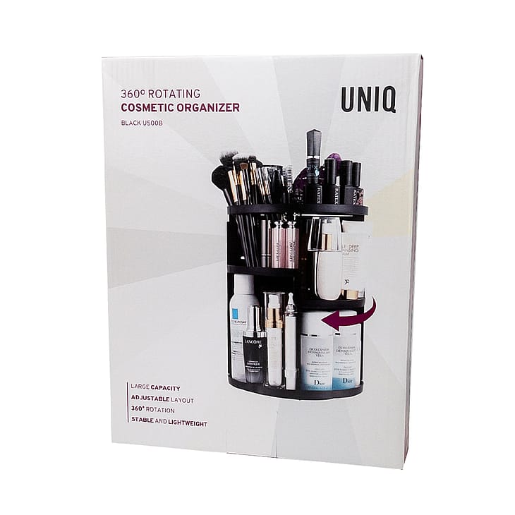 UNIQ Rotating Organizer Sort er den ultimative løsning til at organisere dine skønhedsprodukter. Denne elegante og praktiske organizer roterer 360 grader, hvilket giver dig nem adgang til alle dine makeup- og hudplejefavoritter. Skab et overskueligt og stilfuldt makeup-hjørne med denne smarte organizer.