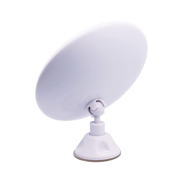 Perfekt forstørrelsesspejl til mindre badeværelseVejer ikke meget og forstørrer som det skal.