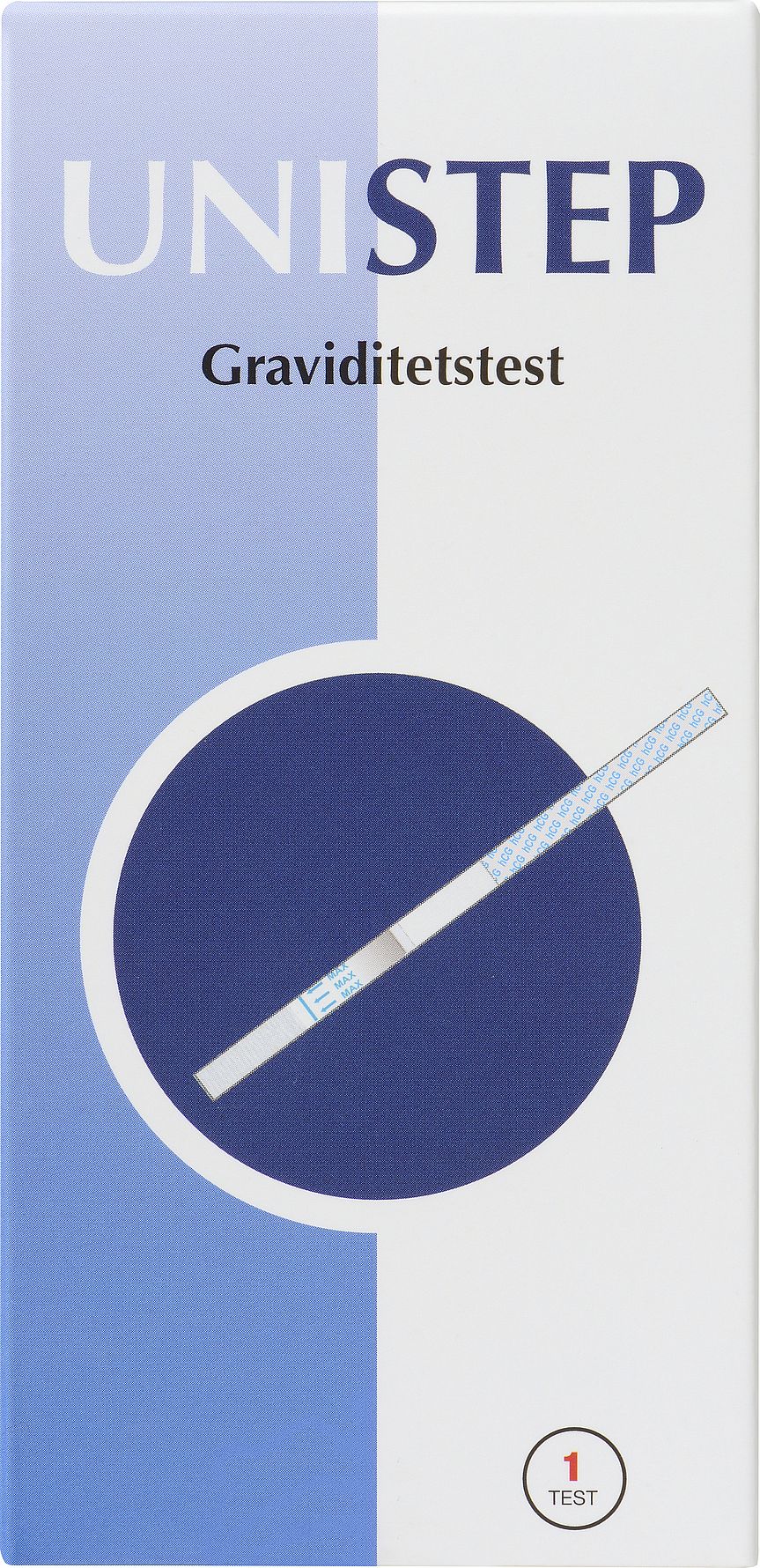 Graviditetstest Sikker test til påvisning af graviditet allerede 1 dag over tiden. Testen tester for graviditetshormonet hCG i urinen. Testen kan bruges allerede første dag efter udebleven menstruation.