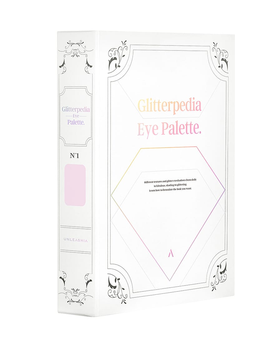 Den inspirerende Unleasha Glitterpedia Eye Palette indeholder ni fortryllende smukke nuancer. Øjenskyggerne påføres let på øjenlåget, og takket være de forskellige størrelser af glitterpartikler skinner deres glitternuancer spektakulært i forskellige lysforhold.