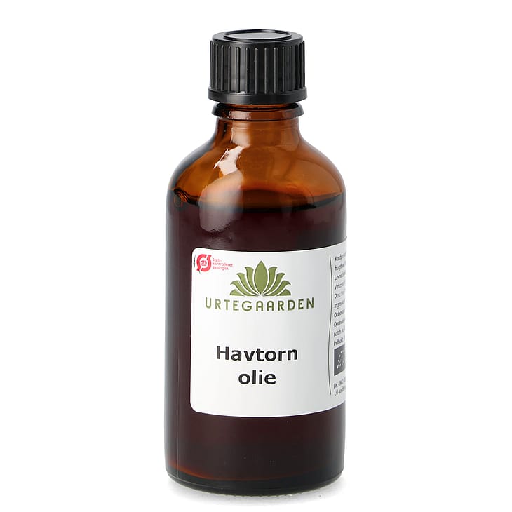Urtegaardens koldpressede, økologiske havtornolie er ren vegetabilsk olie.