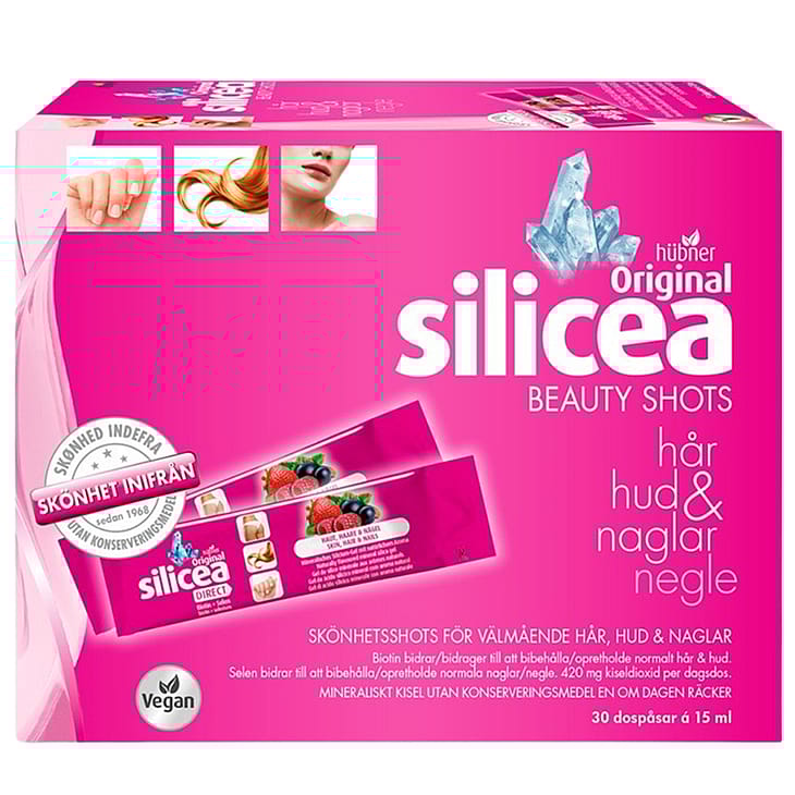 Velsmagende Beauty Shot til hår, hud og negleOriginal Silicea Beauty Shot er et velsmagende kosttilskud med udvalgte næringsstoffer til hår, hud og negle.