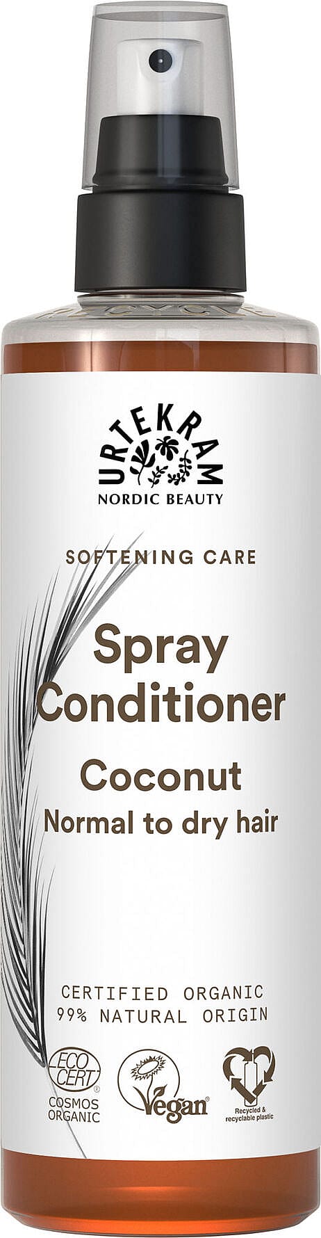 URTEKRAM® Kokos Leave-in Spray Balsam med økologisk kokosnektar bidrager på naturlig vis til afbalanceret fugtighed og forebygger tørhed i normalt hår. Håret bliver let at rede ud og efterlades silkeblødt. Derudover får håret en dejlig duft af naturlig kokossødme. Sprayes i vådt eller tørt hår og vaskes ikke ud. Omrystes før brug.