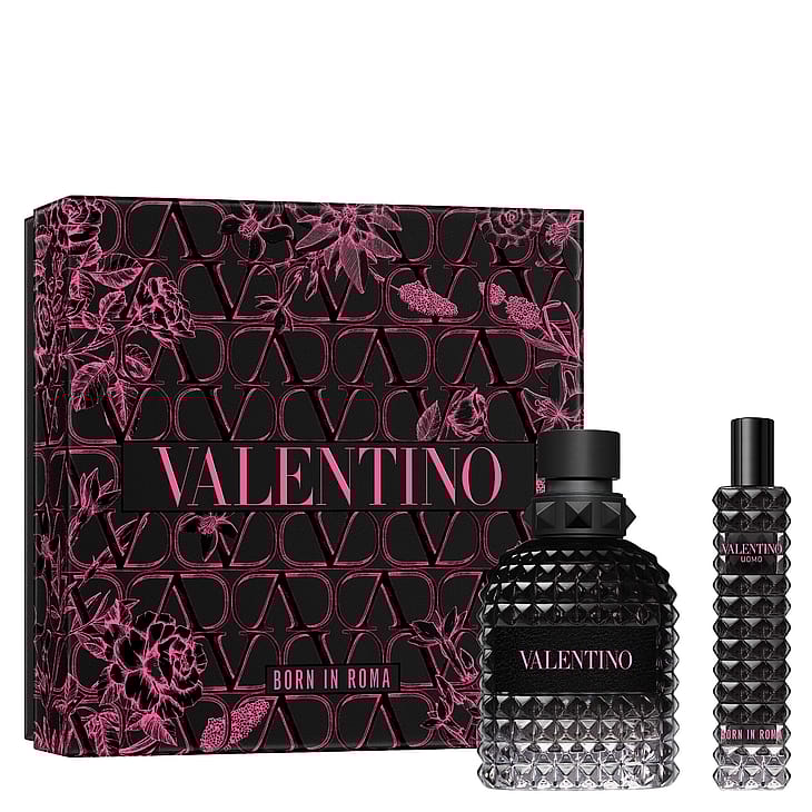 Born in Roma Uomo GaveæskeTag eventyret med Born in Roma Uomo, et gavesæt for den, der søger en maskulin, træagtig duft med vetiver og aromatiske noter. Sættet indeholder Eau de Toilette 50 ml og en Travel Spray 15 ml i en tidssvarende, begrænset udgave, velegnet til både hverdag og rejse.