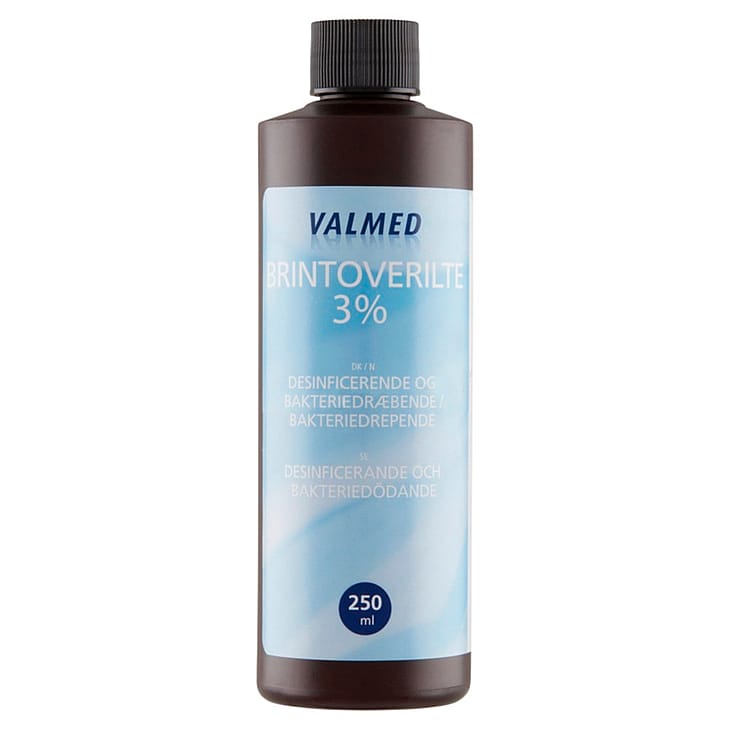 ValMeds Brintoverilte 3% er en effektiv, desinficerende og bakteriedræbende væske, som er yderst velegnet til desinfektion og rensning af både sår og hud.
