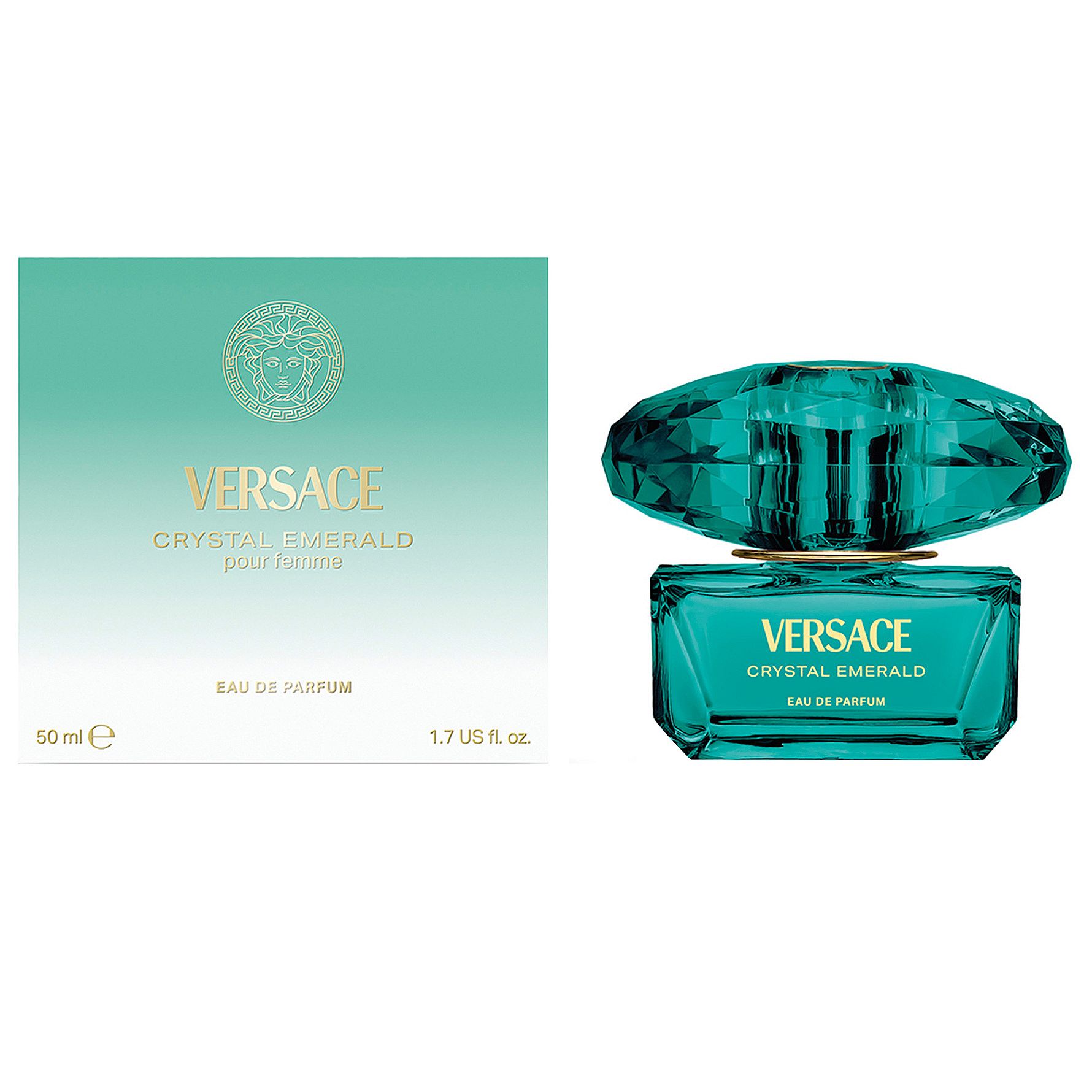 Crystal Emerald er mere end en duft – det er en skat. Flakonen er designet som en juvel i sig selv, skygget i hypnotisk smaragdgrøn, der toner over i ren hvid, afsluttet med gyldne bogstaver og det tidløse Medusa-emblem. Et symbol på luksus og styrke, der skinner lige så klart på dit toilettbord som på din hud.
