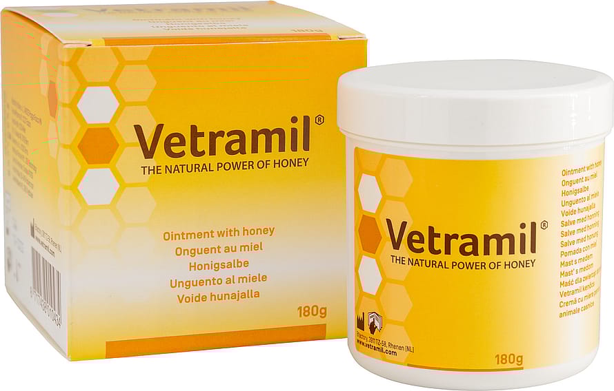 Vetramil sårsalve er baseret på medicinsk honning tilsat essentielle olier. Produktets hydrofile egenskaber skaber et fugtigt sårmiljø.