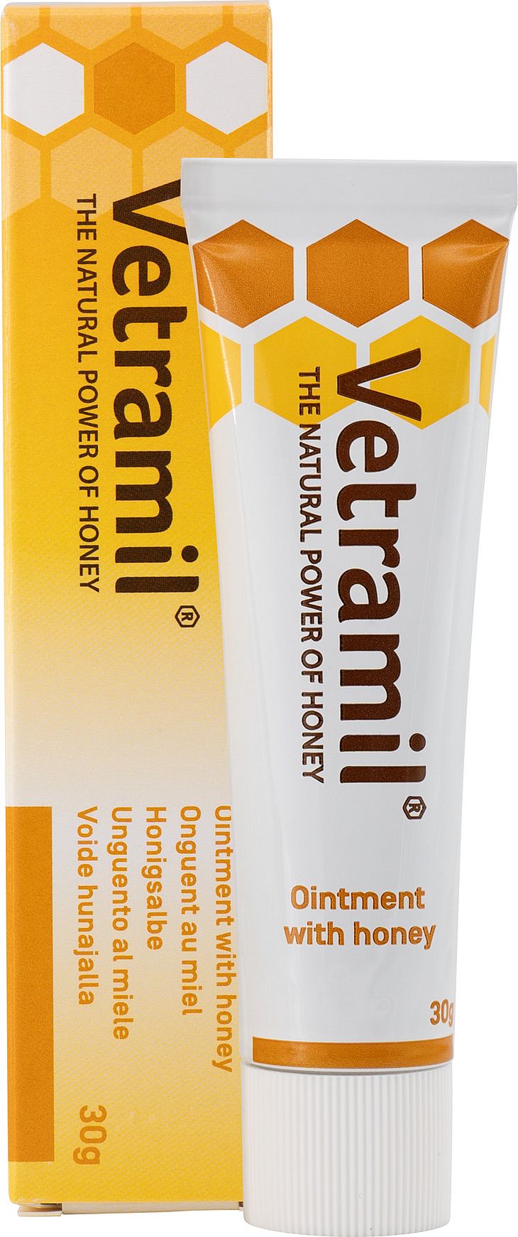Vetramil sårsalve er baseret på medicinsk honning tilsat essentielle olier.