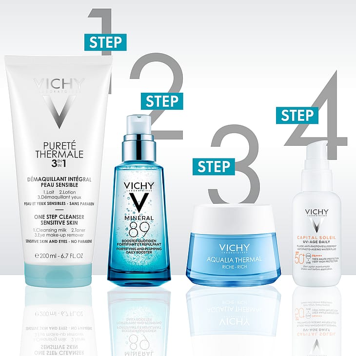 - Med 89% vulkansk vand fra Vichy, som styrker hudbarrieren