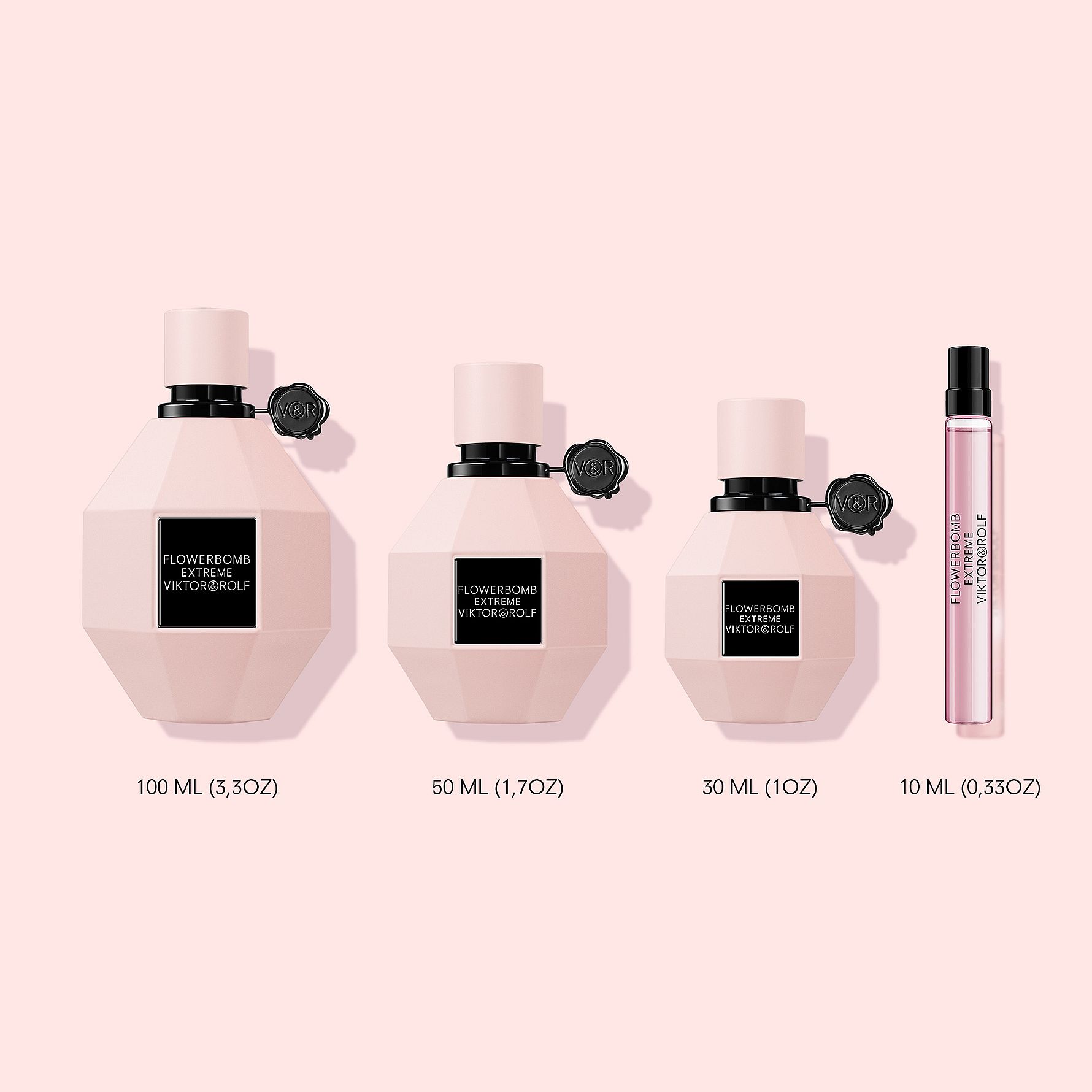 Præsenteret i Viktor & Rolf’s ikoniske granatflakon, fremstår Flowerbomb Extreme i en mat rosa finish og forsejles med et elegant sort voksstempel. Et visuelt stærkt og sofistikeret design, der afspejler duftens karakter—modig, strålende og luksuriøs.