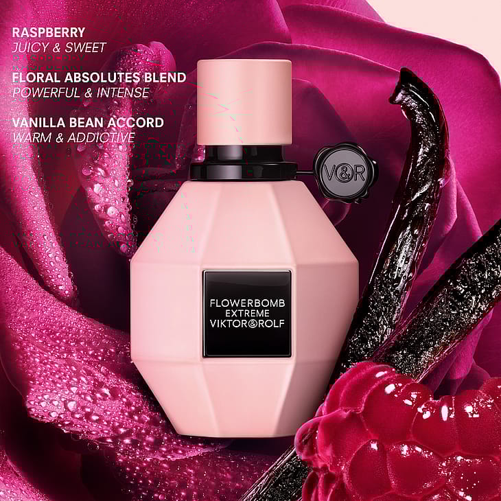 Med Flowerbomb Extreme Eau de Parfum udfordrer Viktor & Rolf grænserne for blomsterdufte—og inviterer dig til at opleve intensitet, sofistikation og uimodståelig tiltrækningskraft i en duft, der er helt din egen.