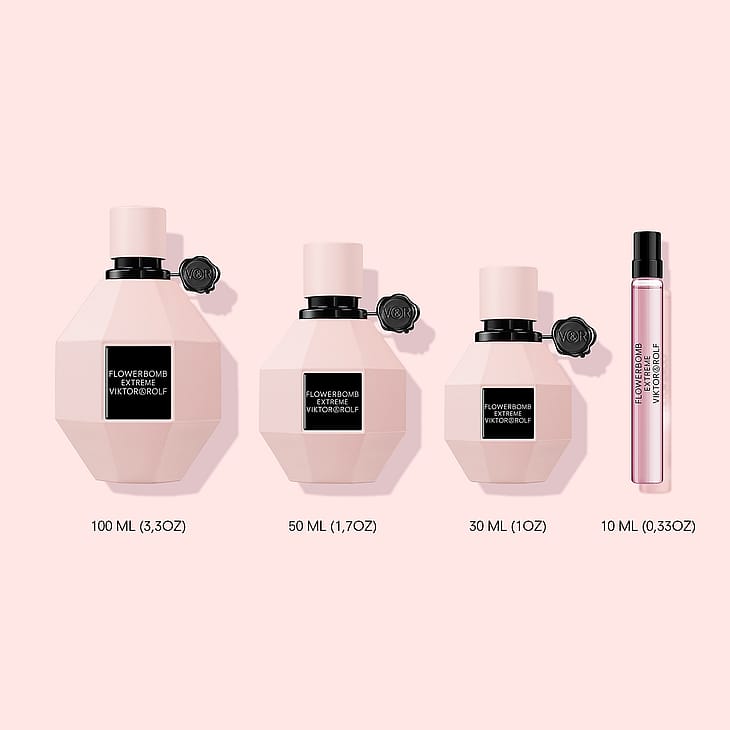 Præsenteret i Viktor & Rolf’s ikoniske granatflakon, fremstår Flowerbomb Extreme i en mat rosa finish og forsejles med et elegant sort voksstempel. Et visuelt stærkt og sofistikeret design, der afspejler duftens karakter—modig, strålende og luksuriøs.