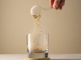 Collagen Immune Plus er let at opløse og smager dejligt af solbær i et glas koldt vand.