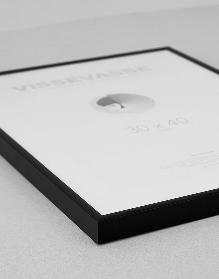Der er sat 2 mm refleksfrit plexiglas af høj kvalitet i rammerne. Det har nemlig den gode egenskab, at lys fra lamper og vinduer ikke giver genskær i glasset, ligesom plakaterne ikke skades af solens skarpe UV-stråler.