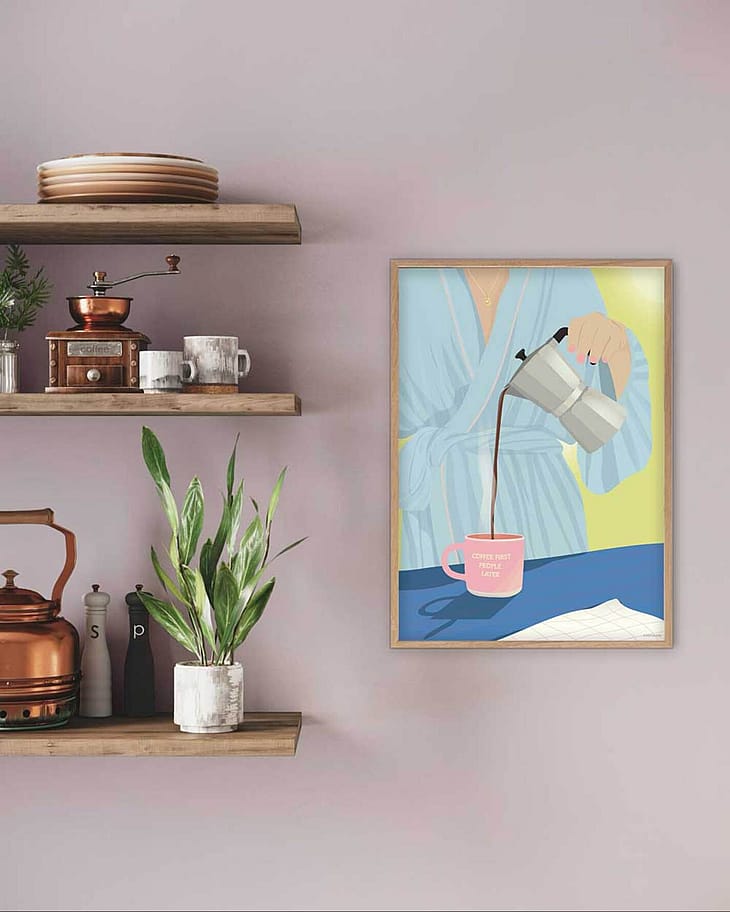 Du nyder stilheden og tiden for dig selv – og vigtigst af alt: kaffen! Duften, smagen og varmen fra den første kop er det, der for alvor får dagen i gang. Med den i hånden er du klar til at møde verden.