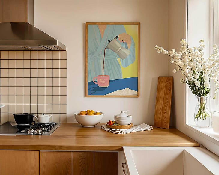 Du nyder stilheden og tiden for dig selv – og vigtigst af alt: kaffen! Duften, smagen og varmen fra den første kop er det, der for alvor får dagen i gang. Med den i hånden er du klar til at møde verden.