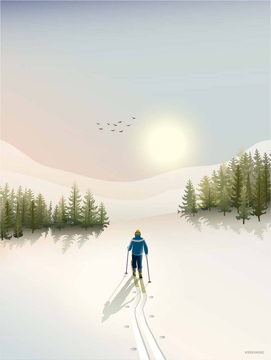 Langrend i det kridhvide vinterlandskab er noget helt særligt. Plakaterne er trykt i Danmark på svensk papir 170 gr. Arctic Silk. ViSSEVASSE er stolte af at være FSC® certificerede (SCS-COC-005763-BS).