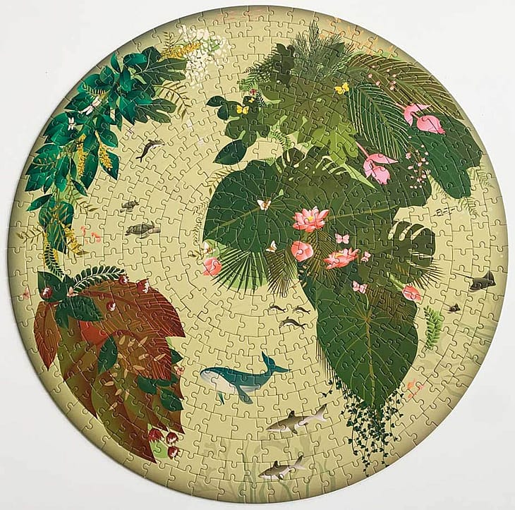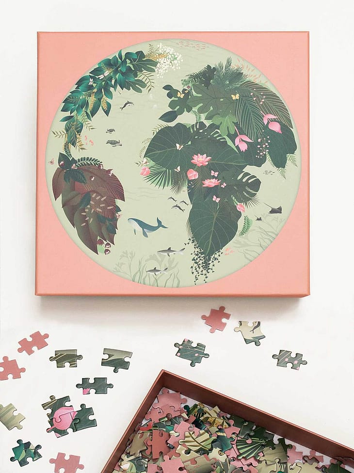 Puslespillet afslører brik for brik vores planets land- og vandområder. Vidste du, at de planter og dyr, du finder på puslespillet, hører til i det område, de er placeret?