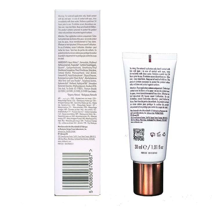 Aqua (Water)*, Homosalate, Ethylhexyl Methoxycinnamate, Glycerin*, Propanediol*, Synthetic Fluorphlogopite, Cetearyl Alcohol, Cyclopentasiloxane, Dimethicone/Vinyl Dimethicone Crosspolymer, Phenyl Trimethicone, Octocrylene, Cetyl Alcohol, Glyceryl Stearate, Ceteareth-20, Phenoxyethanol, Butyrospermum parkii (Shea) Butter*, Tocopheryl Acetate, Panthenol, Tetrasodium Glutamate Diacetate, Dimethicone, Ethylhexylglycerin, Disodium EDTA, Citric Acid, Tin Oxide (CI 77861), Titanium Dioxide (CI 77891), CI 77491, CI 77492, CI 77499 (Iron Oxides).*Organic/Natural