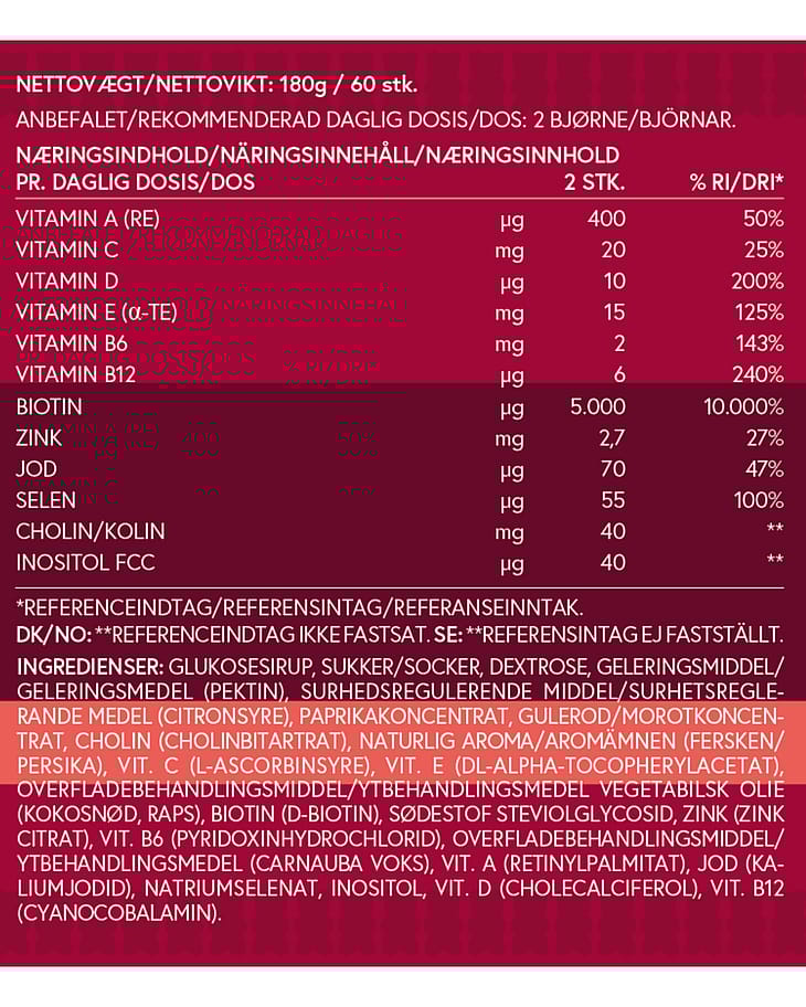 | Indhold pr. daglig dosis | 2 styk | % af RI |