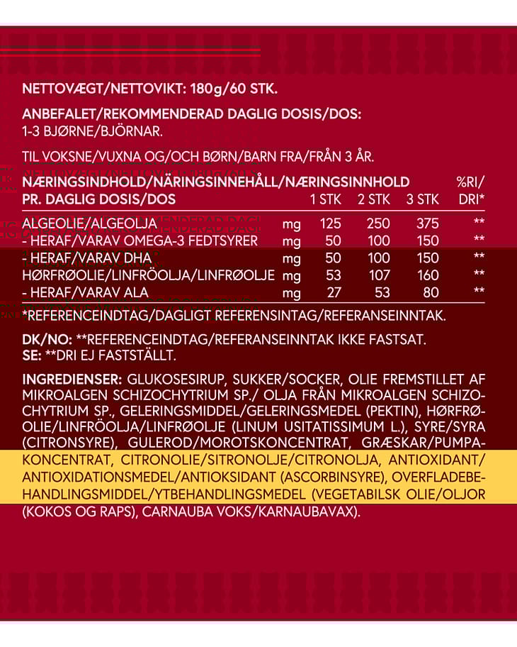 Kosttilskud. VitaYummy Omega 3 indeholder både DHA og ALA.