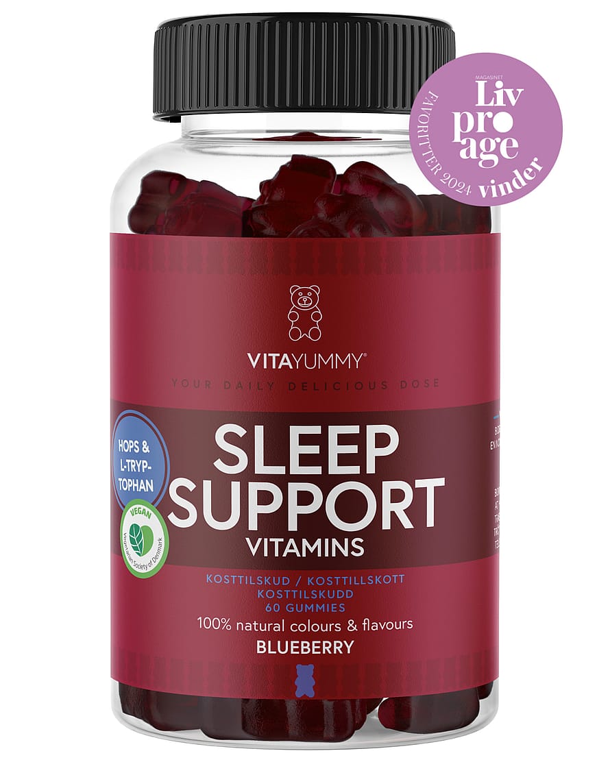 VitaYummy Sleep Support indeholder en unik sammensætning af L-Tryptofan, Humle og B6.