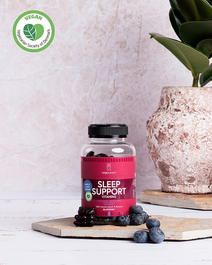 VitaYummy Sleep Support indeholder en unik sammensætning af L-Tryptofan, Humle og B6.
