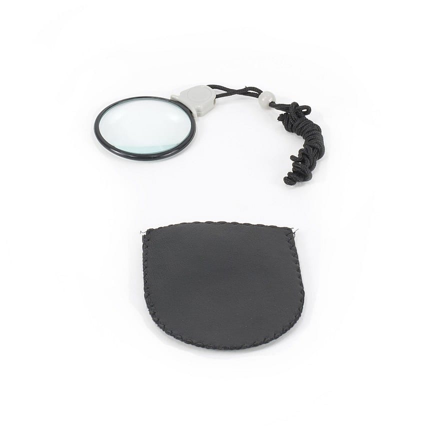 Rundt forstørrelsesglas til selv den mindste tekst. Med halssnor, så det er altid der, når du har brug for det. 4 gange forstørrelse.