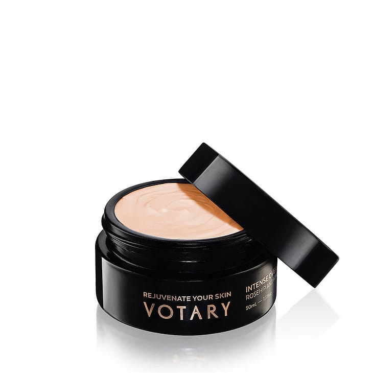 VOTARY Intense Overnight Mask booster hudens natlige fornyelsescyklus for forynget og strålende hud. Dens unikke blanding af naturlige planteolier og aktive ingredienser udglatter fine linjer og blødgør huden. Naturlige ekstrakter af narcisser og camuplanter lysner hudtonen og gør den mere ensartet, så du vågner op til en fejlfrit glødende hud. Hyaluronsyre giver intens hydrering og efterlader huden glat og fyldig.